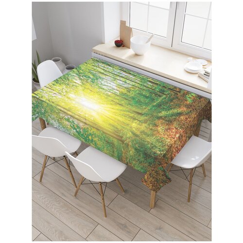 Скатерть прямоугольная JoyArty Лесные лучи из сатена, 120x145 см
