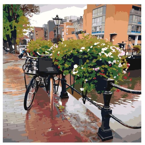 Картина по номерам, Живопись по номерам, 80 x 80, ETS2444040, велосипед, городской пейзаж, Европа, здание, цветы, дождь, осень