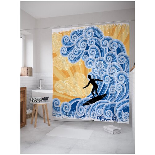 Штора занавеска) для ванной JoyArty Витьеватая волна из сатена, 180х200 см с крючками