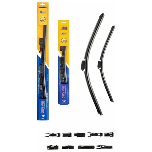 Комплект бескаркасных щеток стеклоочистителя KRAFT KT 830854, 600400 мм, 10 адаптеров