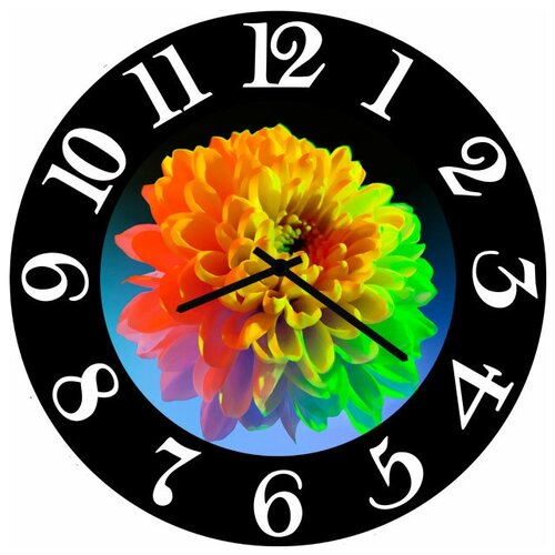 Настенные часы. Модель для современного интерьера. Механизм: Кварцевый Корпус: Дерево Размер: Диаметр 35 см Рисунок: Пышный цветок в черной рамке
