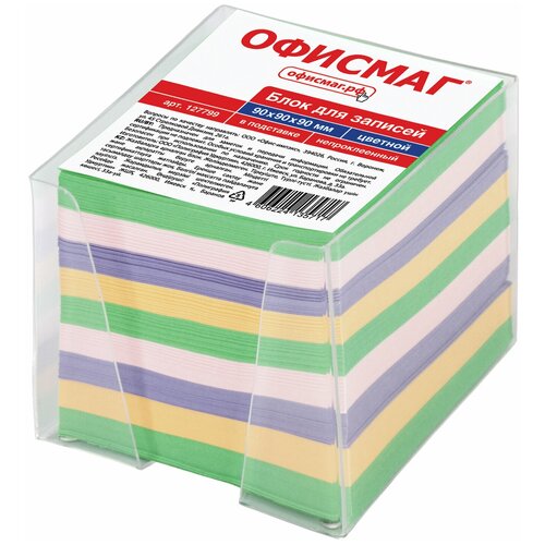 Блок для записей офисмаг в подставке прозрачной, куб 999 см, цветной, 127799