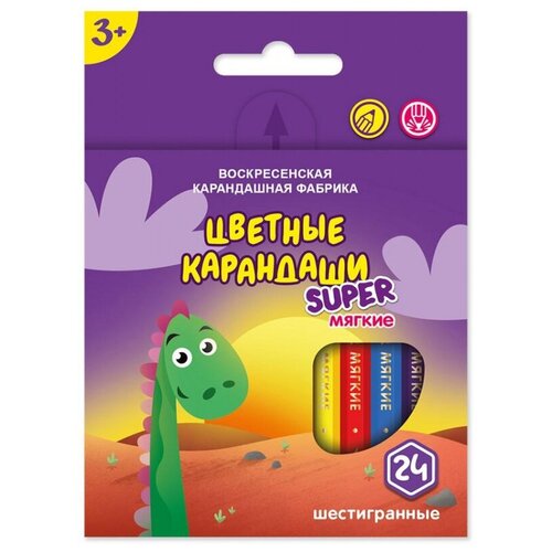 Набор цветных карандашей Динозаврик, заточенные, для рисования на бумаге, шестигранные. Предназначен для графических работ любой сложности. Изготовлены из сырья и материалов природного происхождения и качественной химически необработанной древесины липы, выращенной в экологически чистых районах России. Проклейка стержня осуществлена по специальной технологии. Рекомендуемый возраст от 3х лет. Длина корпуса карандаша 88 мм. Диаметр грифеля 3 мм. Поставляется в картонной упаковке с европодвесом, размер 90x15x125 мм. Размер упаковки ШхГхВ): 90x15x125 ММ; Диаметр грифеля: 3 ММ; Страна происхождения: Россия; Длина корпуса карандаша: 88 ММ; Количество цветов: 24; Тип упаковки: картонная коробка с европодвесом; Аксессуары в комплекте: отсутствует; Диаметр корпуса карандаша: 7 ММ; Форма корпуса: шестигранная