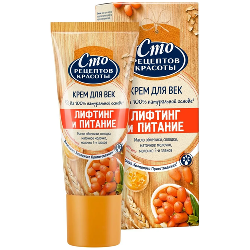 Вся польза лучших рецептов полезного омоложения с облепихой! Крем для век Сто Рецептов Красоты Лифтинг и питание способствует уменьшению темных кругов и питанию нежной кожи вокруг глаз.Входящее в состав масло виноградных косточек обладает множеством свойств, полезных для кожи лица: отшелушивает, успокаивает, питает, смягчает, увлажняет, тонизирует кожу, делает ее более упругой, укрепляет стенки кожных сосудов, улучшает цвет лица, противостоит разрушению волокон коллагена и эластина, защищает от вредного солнечного излучения. Благодаря высокому содержанию особых биофлавоноидов, напоминающих структуру человеческого эстрогена которых называют фитоэстрогенами) масло восстанавливает поврежденные мембраны клеток, так же оказывает антиоксидантное, регенерирующее и, соответственно, выраженное антивозрастное действие. Кроме этого, масло обеспечивает пилинг мертвых клеток кожи, предупреждает расширение пор и регулирует деятельность сальных желез.Масло облепихи улучшает обмен веществ и микроциркуляцию в подкожножировой клетчатке, способствуя питанию, смягчению кожи, предохраняет кожу от высыхания и шелушения; восстанавливает липидный и кислотнощелочной баланс кожи, способствует повышению упругости и эластичности кожи, устранению возрастных и мимических морщин за счет стимуляции синтеза коллагена), предотвращает преждевременное старение кожи. Так же способствует отбеливанию кожи, осветлению веснушек и других пигментных пятен, восстанавливает кожу, поврежденную вследствие солнечных или химических ожогов, предупреждает воспаление кожи и способствует устранению угревой сыпи.Все продукты бренда Сто Рецептов Красоты готовятся на 100 натуральной основе, компоненты которой отмечены в составе, по Технологии Холодного Приготовления особая холодная стадия добавления активных компонентов), которая позволяет сохранить всю пользу полезных компонентов рецепта. Выбери свой полезный рецепт от бренда Сто Рецептов Красоты! объем: 20 мл бренд: Сто Рецептов Красоты странаизготовитель: Россия