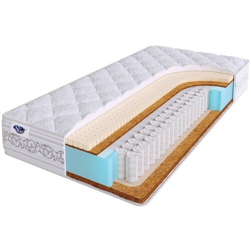 Матрас ETALON MIX HARD S500 выполнен из экологичных материалов и обладает разным уровнем жесткости сторон.Одна сторона матраса выполнена из толстого слоя кокосовой койры и обладает высокой жесткостью. Кокосовая койра природный материал, обладающий такими качествами, как прочность, упругость и отличная воздухопроницаемость. Другая сторона модели изготовлена с применением слоя натурального латекса толщиной 1 см и имеет жесткость выше средней.Латекс мягкий, высокоэластичный материал, обладающий высокими адаптационными свойствами. Он максимально точно подстраивается под изгибы тела спящего человека, создавая оптимальный уровень анатомического эффекта.В основе модели лежит независимый пружинный блок. Система Pocket 500 пружин на спальное место) позволяет каждой пружине самостоятельно реагировать на вес тела человека, не затрагивая при этом соседние пружины. Это дает возможность матрасу идеально повторять контур лежащего и обеспечивать ортопедическую поддержку позвоночника.Чехол матраса выполнен из объемного хлопкового трикотажа со стежкой на холлофайбере.