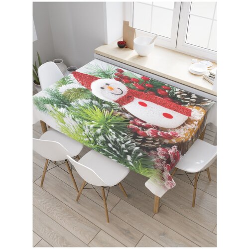 Скатерть прямоугольная JoyArty Лесной снеговик из сатена, 120x145 см
