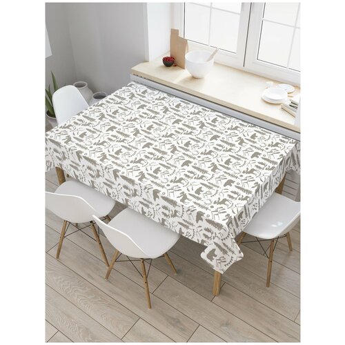 Скатерть прямоугольная JoyArty на кухонный стол Олени и медведи среди гор из оксфорда, 120x145 см
