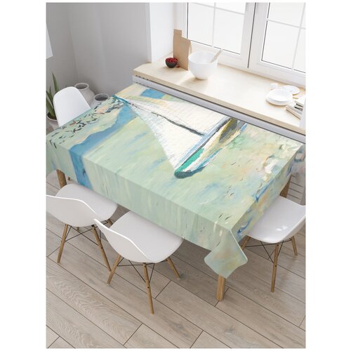 Скатерть прямоугольная JoyArty Устойчивый парусник из сатена, 120x145 см