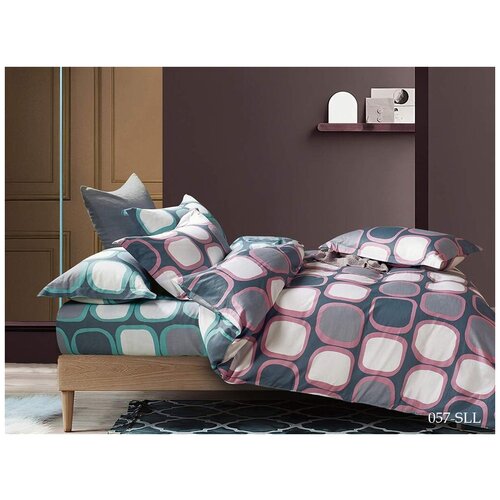 Сатиновый комплект постельного белья 057SLL Cleo разноцветный), Евро наволочки 50x70)