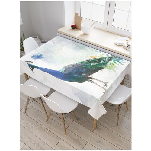 Скатерть прямоугольная JoyArty Королевский павлин из сатена, 180x145 см