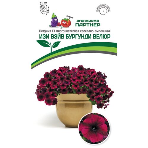 Семена петунии F1 Серия Изи Вэйв бургунди велюр многоцветковая каскадноампельная, 5 штук в упаковке.Изи Вэйв петуния с улучшенной окраской и сильным цветком, невероятно устойчивым к воздействию ветра и дождя. Дословно переводится как легкая волна. И это не удивительно, ведь главной целью было создание легкого в уходе гибрида, который бы хорошо себя проявлял в условиях короткого дня. Она сумела доказать свою исключительную выносливость противостоять любым катаклизмам погоды и великолепно чувствовать себя в условиях жары и холода. Своим появлением Изи Вэйв взбудоражила цветоводов, ландшафтных дизайнеров, профессионалов и производителей рассады. Полюбилась она за исключительную выравненность, мощь, а также яркое и неугомонное цветение. Благодаря многочисленному ветвлению, растение образует красивую крону в форме купола с плотным расположением цветков по всему кусту. При посадке в открытый грунт одно растение с легкостью закрывает площадь около 1,5 м и образует красочный живой ковер. Очень быстро восстанавливается после дождя и ветра. Это лучший выбор для балконов, беседок, клумб и высоких вазонов с размещением на уровне глаз. Чтобы петуния полностью раскрыла свой потенциал, рекомендуем объем кашпо 15 л и более на одно растение и схему посадки в грунте 60х60 см.Практический совет: перед посевом необходимо провести обеззараживание почвы; гранулы располагайте по поверхности слегка увлажненной почвы, емкости накройте стеклом или пленкой и содержите посевы при температуре 43;2543;27С до момента прорастания.Следите за влажностью посевов и их проветриванием.