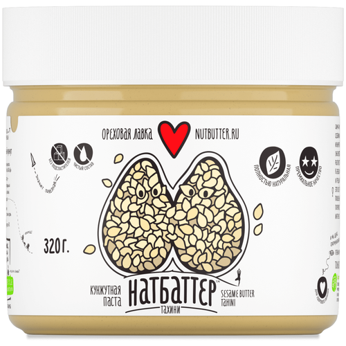 Натбаттер это известный старейший российский эко бренд натуральных ореховых паст. В 2011 году семья молодых энтузиастов начала делать первый в России оригинальный американский nut butter порусски натбаттер, ореховая паста, и между делом породила целое течение производителей ореховых паст.Несмотря на то, что паста Натбаттер быстро стала популярной, бизнес все равно остался небольшим и семейным. Создатели бренда Люба и Костя продолжают следить за всем и во всем участвовать сами. Пасты Натбаттер, среди множества производителей, остаются оригинальным продуктом с выделяющимся вкусом и собственными правилами работы с орехами. Создателей заботят не только общепринятые нормы соблюдения пищевой безопасности, но и сложные аспекты пищевой полезности жиров. Марке Натбаттер удается обеспечивать качество, недоступное мелким производителям, благодаря многолетнему сотрудничеству с крупными поставщиками на привилегированных условиях, что позволяет делать авторский отбор партий орехов и использовать высокоточные промышленные жарки. gt; Это тахини Натбаттер. Натуральная кунжутная паста, она же тхина. Это самая древняя паста с большой историей, которую продолжают ценить и по сей день за ее уникальные полезные свойства. Обжарка кунжута без потери этих самых ценных свойств крайне сложный и тонкий процесс, поэтому Натбаттер очень ответственно подошли к собственному производству тахины. Кунжутная паста Натбаттер это та самая классическая традиционная тахини, с естественной горчинкой и теплым ореховым послевкусием, не из сырого кунжута, а из отборного правильно обжаренного белого кунжута. Эта паста имеет кремовый помол, она легко перемешивается и хорошо подходит для заправки салатов и домашнего хумуса. Марка Натбаттер ориентирована только на полезные пасты и не производит пастдесертов или паст с подсластителями. Основатели бренда против любых химических хитростей и улучшателей вкуса, они продвигают осознанное потребление и правильное питание. Кроме того, создатели считают, что для активной жизни не надо много есть, а любые подсластители и улучшатели порождают избыточный аппетит. Когда в погоне за разнообразием и в конкуренции с шоколадом и вареньями производители ореховых паст стали поразному их улучшать, вместо этого Люба и Костя сформулировали правило Натбаттер о пользе ореховых паст Только правильные жиры белки и никаких добавленных углеводов, ограничили свой ассортимент только своими оригинальными несладкими пастами, и вдобавок начали выпускать также полезные масла, расширив экспертизу на различные жиры. Проект Натбаттер использует в качестве слогана фразу Самые главные вещи на свете это не вещи, и занимает проактивную социальную позицию, поддерживает общества людей с пищевыми непереносимостями и ставит своей целью увеличение качества и продолжительности активной жизни человека. Часто Натбаттер можно встретить на благотворительных ярмарках, где прибыль от продаж идет в поддержку различных б