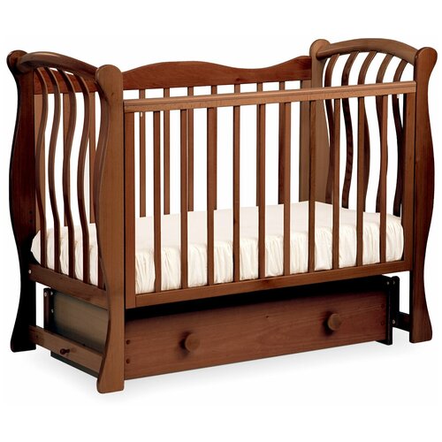 Изысканный и свежий дизайн детской кроватки Ландыш БИ 07.2 от компании Лель, е изогнутые панели, фигурная задняя перекладина и красивые расцветки будут радовать ваш взор и украсят интерьер любой комнаты, превращая ее в спальню маленького принца или принцессы. Красота этой модели не уступает е качеству и высокой функциональности.Материал кроватки крепкая и влагостойкая древесина бука с высококачественной отделкой, окраской и шлифовкой, обрабатываемая только безопасными лаками европейского производства на водной основе без органических растворителей. Маятниковый механизм поперечного качания, изготовленный из массива бука, на подшипнике с металлической втулкой, необычайно надежен и крепок.Просторный ящик для белья, разместит сменные простынки, пододеяльники и наволочки буквально у вас под рукой.