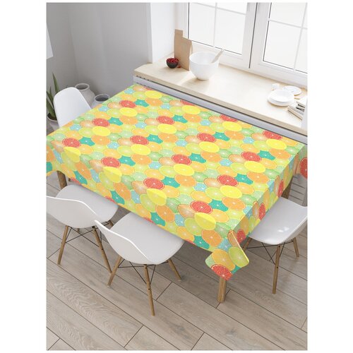 Скатерть прямоугольная JoyArty Нарезка цитрусовых из сатена, 180x145 см
