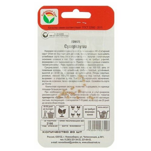 Семена Томат Суперклуша, среднеранний, 20 шт