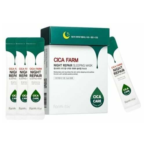 Ночная маска с экстрактом азиатской центеллы FarmStay cica farm night repair sleepeng mask 20штх 4мл