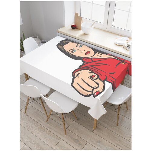 Скатерть прямоугольная JoyArty Уверенная женщина из сатена, 180x145 см