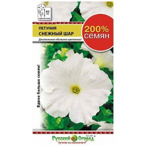 Семена русский огород Цветы Петуния Снежный шар 200 0.2 г 713240 используются для выращивания на садовом участке.Данная петуния сочетает в себе красивые, довольно крупные, цветки чистого белого цвета и отличные характеристики многоцветковых петуний, что делает е прекрасным материалом для украшения балконов, вазонов, а также для массовых ковровых посадок. Пышное и продолжительное цветение дает возможность создать прекрасные бордюры и рабатки, яркие цветовые пятна на газонах, или вдоль дорожек. Многоцветковая петуния зарекомендовала себя высокоустойчивой ко многим капризам природы она не боится ни дождя, ни ветра, ни жары и вплоть до заморозков стойко выдержит любую непогоду.Нуждается в умеренном поливе. Подкормки необходимо проводить с интервалом 710 дней, начиная через неделю после высадки рассады и до августа.