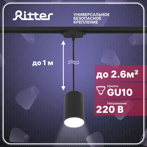 Трековый светильник подвесной однофазный под лампу GU10, алюминий, черный, до 40Вт, крепление на любой шинопровод 220В, Ritter ARTLINE 59928 3