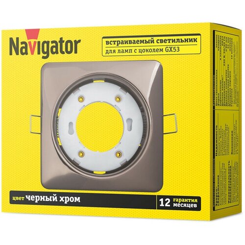 Светильник встраиваемый NAVIGATOR Квадрат GX53 черный хром
