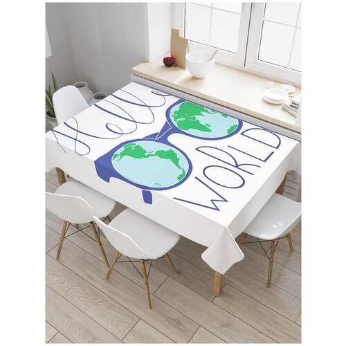 Скатерть прямоугольная JoyArty Мир в очках из сатена, 120x145 см