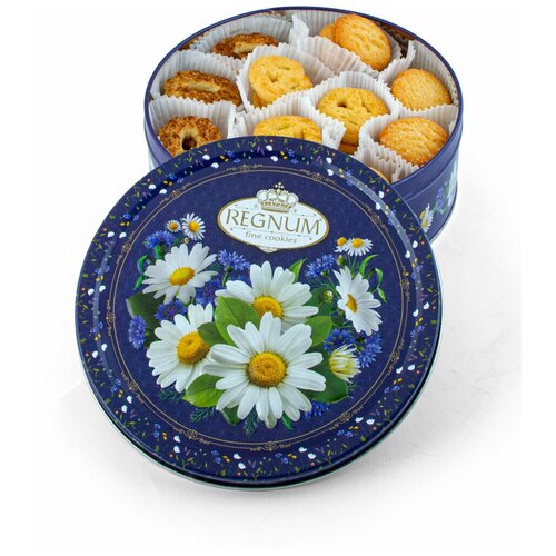 Для каждого вкуса печенья разработана своя уникальная форма: для яблока и корицы цветок, для сахарной обсыпки круг, для тыквы, розмарина и апельсиновой цедры крендель. Банка с печеньем выпускается в ярком и контрастном дизайне с эмбоссментом. Рельефным тиснением выделены букет ромашек и логотип бренда. Элегантная рельефная надпись Regnum с венчающей ее короной придает банке премиальный и эффектный вид, который сразу привлекает к ней внимание. После того, как печенье закончится, в банке можно хранить разные мелочи или домашнюю выпечку. В банке с Ромашками сразу три разных вида печенья: 1. Сдобное печенье с яблоком и корицей идеальная формула рецепта, в которой соединились два ярких вкуса;2. Сдобное печенье в сахарной обсыпке классическая и всеми любимая рецептура с сахарной обсыпкой, которая придает печенью хрустящую сладость; 3. Сдобное печенье с тыквой, розмарином и апельсиновой цедрой рецептура с нежными и одновременно пикантными нотками, которые оставляют ощущение неповторимого и щедрого вкуса. Состав: Печенье сдобное с сахарной обсыпкой: мука пшеничная хлебопекарная вс, сахарпесок, маргаринмасла растительные рафинированные дезодорированные, вода питьевая, ароматизатор натуральный: масло сливочное), вода питьевая, крахмал кукурузный, молоко сухое обезжиренное, кокосовая стружка, яичный порошок, соль, эмульгатор: соевый лецитин; ароматизаторы натуральные: ваниль, масло сливочное, разрыхлитель; гидрокарбонат натрия; антиокислитель: аскорбиновая кислотаПищевая ценность: белки 5.5 г, жиры 24 г, углеводы 60 г. Печенье сдобное с яблоком и корицей: мука пшеничная хлебопекарная вс, сахарпесок, маргарин масла растительные рафинированные дезодорированные, вода питьевая, ароматизатор натуральный: сливочное масло), вода питьевая, ароматизатор натуральный: сливочное масло) вода питьевая, крахмал кукурузный, масло сливочное сливки пастеризованные), молоко сухое обезжиренное, кокосовая стружка, корица молотая, порошок яблока, яичный порошок, соль, эмульгатор: соевый лецитин, ароматизаторы натуральные: яблоко, ром, разрыхлитель: гидрокарбонат натрия; антиокислитель: аскорбиновая кислота. Пищевая ценность: белки 5.8 г, жиры 24.2 г, углеводы 62 г. Печенье сдобное с тыквой: мука пшеничная хлебопекарная вс, сахарпесок, маргарин масла растительные рафинированные дезодорированные, вода питьевая, ароматизатор натуральный: сливочное масло, вода питьевая, ароматизатор натуральный: сливочное масло) вода питьевая, крахмал кукурузный, масло сливочное сливки пастеризованные, вода питьевая), молоко сухое обезжиренное, порошок тыквы, кокосовая стружка, яичный порошок, соль, эмульгатор: белок, соевый лецитин, ароматизатор натуральный: апельсин с экстрактом апельсиновой цедры: розмарин, разрыхлитель: гидрокарбонат натрия; антиокислитель: аскорбиновая кислота. Пищевая ценность: белки 6 г, жиры 22 г, углеводы 60 г. Тип упаковки: жестяная банка. Срок годности: 18 месяцев. Хранить при температуре 185C. Страна производства: Россия.