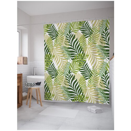 Штора для ванной, занавеска в ванную комнату JoyArty Лиственная композиция из сатена, 180х200 см с крючками