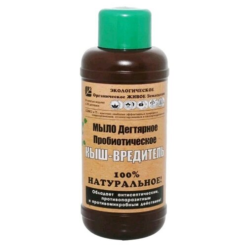 Для профилактики болезней растений и эффективной борьбы с вредителями садовых участков. Предупреждает, уничтожает и отпугивает целую плеяду вредителей: тля, клещи, бабочки, жуки и даже грызуны. Мыло представляет собой густую коричневую жидкую смесь, основными ингредиентом которой являются калийные соли жирных кислот, березовый деготь и полезные природные бактерии пробиотики. Для производства мыла используются только натуральные ингредиенты.Состав описание) : Мыло представляет собой густую коричневую жидкую смесь, основными ингредиентом которой являются калийные соли жирных кислот, березовый деготь и полезные природные бактерии пробиотики. Для производства мыла используются только натуральные ингредиенты. Водный раствор Дегтярного мыла образует защитную пленку на обработанной поверхности растения. Запах дгтя удерживается пленкой и продолжительное время отпугивает вредителей. На тельце насекомых плнка блокирует дыхательные пути изза чего наступает их гибель. Полезные природные бактерии, которые помогают восстановить рост и укрепить иммунитет растений. Уникальные свойства микробиологического препарата кышвредитель : 100 натуральный состав калийные соли жирных кислот, берзовый дготь, пробиотики природные бактерии); Использование уникальных свойств берзового дгтя защита от различных грибковых заболеваний, противомикробное средство и отличный антисептик; Защитная плнка, образуемая на растениях, долго сохраняет резкий запах дгтя, который отпугивает грызунов; Свойства пробиотиков укрепление иммунитета растений и усиление роста; Экономичность, простота применения и приготовления раствора водорастворимое концентрированное средство разводится водой, легко наносится;Применение: Защита овощных и садовых культур от вредителей тлей, клещей, бабочек, жуков, грызунов и т. п.);Профилактика болезней растений, вызываемых бактериями или грибами. Расход: Руководствуйтесь инструкцией производителя при приготовлении водного раствора 200400 мл на 10л). Изображение товара может не соответствовать внешнему виду.