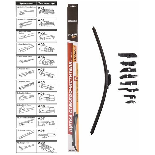 Щетка стеклоочистителя бескаркасная SKYWAY стандарт 9 адаптеров 58см23, S02701067