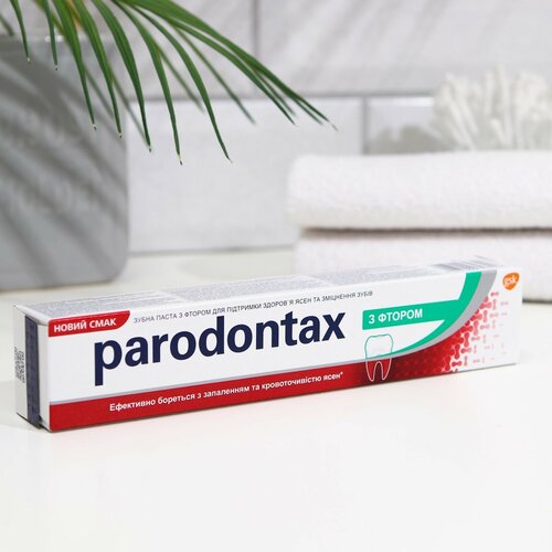 Зубная паста parodontax содержит 2 основных ингредиента: 1400 ppm фторида для укрепления зубов и бикарбонат натрия, который помогает устранить зубной налет. Именно бикарбонат натрия придает зубной пасте уникальный вкус. К вкусу зубной пасты parodontax необходимо привыкнуть, но большинству людей он начинает нравиться не меньше вкуса обычной зубной пасты уже через 2 недели. При ежедневном использовании зубная паста parodontax помогает поддержать здоровье десен и зубов. Зубная паста parodontax c фтором специально разработана для устранения воспаления и кровоточивости десен, а также поддержания здоровья десен, крепости зубов и свежести дыхания.
