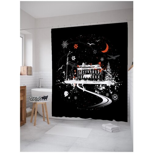 Штора занавеска) для ванной JoyArty Снежная ночь из сатена, 180х200 см с крючками