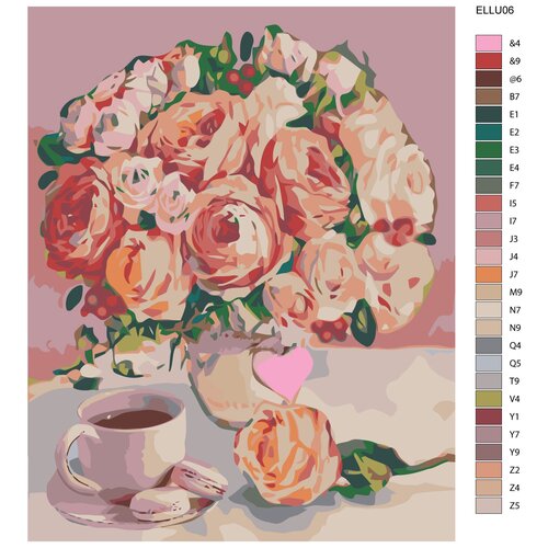 Картина по номерам, 100 x 125, ELLU06, цветы, ваза, букет, чашка, стол, Живопись по номерам, набор для раскрашивания, раскраска
