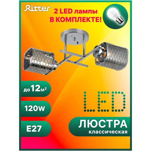 Комплект Потолочная люстра PALERMO 2хE27х60Вт Ritter 52521 9Лампа светодиодная 32343 3 2 шт.)