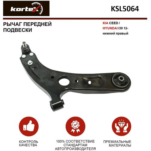 Рычаг Kortex для передней подвески Kia Ceed Hyundai I30 12 пер. подв. нижн. прав. OEM 54501A2600; 54501A6200; KSL5064