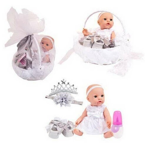 Пупс в корзинке с аксессуарами пьет и писает цвет серебристый