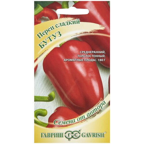 Перец Бутуз среднеспелый сорт универсального предназначения, который отличается высокой урожайностью и замечательным вкусом плодов. Им присуща зеленоватобелая окраска, при полном созревании они становятся темнокрасными. Плод конусовидной формы, имеет 23 гнезда. Толщина стенки достигает 7 мм. Он отличается отменным товарным видом, поэтому семена можно купить для массового выращивания овоща. Для того чтобы получить качественный урожай, достаточно организовать регулярное рыхление почвы и своевременный полив. Преимущества: устойчивость к заболеваниям: высокая урожайность: хорошая транспортабельность: можно выращивать в открытом и закрытом грунте.