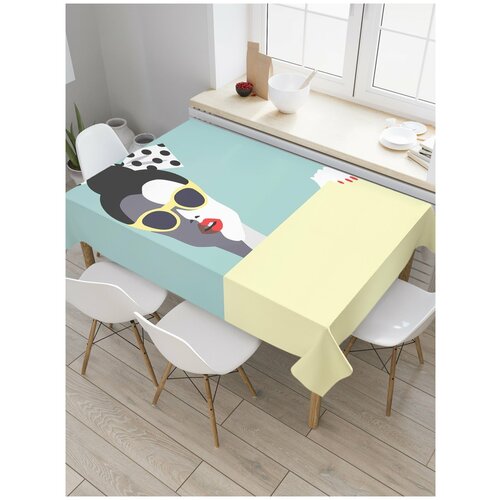 Скатерть прямоугольная JoyArty на кухонный стол Девушка за шторкой из оксфорда, 120x145 см