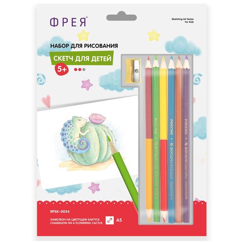 Фрея RPSK0054 Хамелеон на цветущем кактусе Скетч для раскраш. цветными карандашами 20.5 х 14.5 см 1 л. .