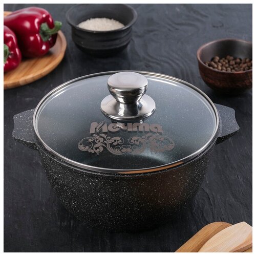 Кастрюля Гранит, 3 л, стеклянная крышка, антипригарное покрытие, цвет чрный