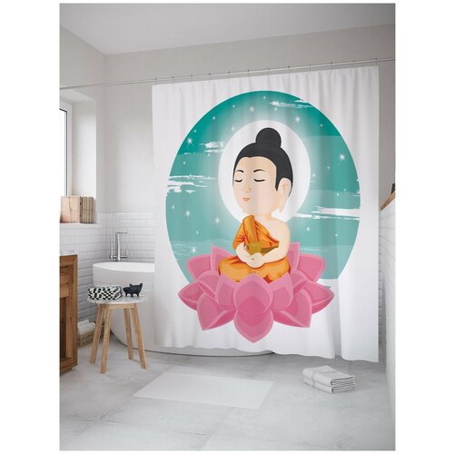 Штора занавеска) для ванной JoyArty Медитация при луне из сатена, 180х200 см с крючками