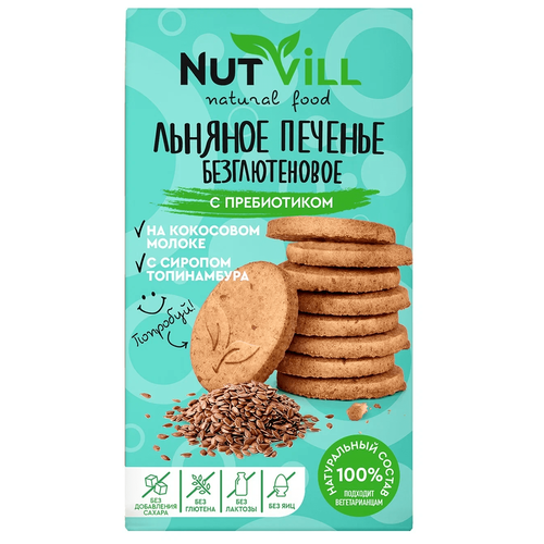 NutVill. Печенье Льняное с пребиотиком, без сахара, без глютена, 1шт х 85г
