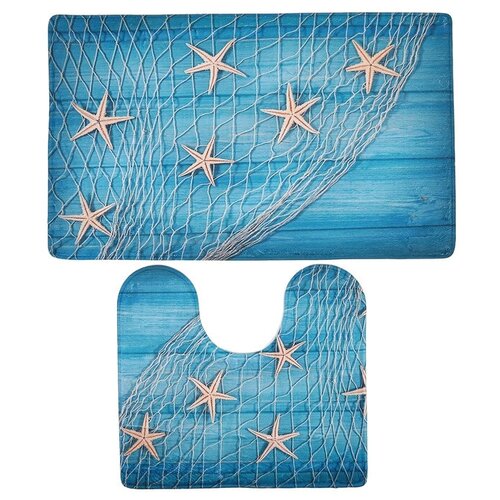 Комплект ковриков Доляна Морские звезды 40x45, 45x75 см 3904509), 45х40 смдля ванной комнаты, синий