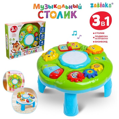 Развивающий столик Веслая игра создан специально для самых маленьких. Он сделает первые открытия крохи познавательными и увлекательными. С веслой игрой малыш научится узнавать животных, различать цвета и формы. Можно перелистывать книжкумалышку, играть на миниатюрном пианино, стучать по звонким барабанам, смотреться в забавное зеркало, расставлять по своему желанию фигурки. Обучение станет занимательной игрой, ребнок разовьт слуховое и эмоциональное восприятие, воображение и каждый день будет совершать удивительные путешествия в мир музыки и знаний.