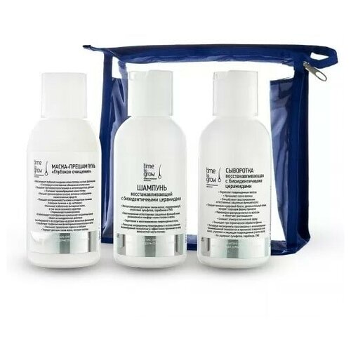 Time To Grow Дорожный набор. Маскапрешампунь, шампунь и сыворотка в наборе из флаконов по 100 мл. Тайм Ту Гроу