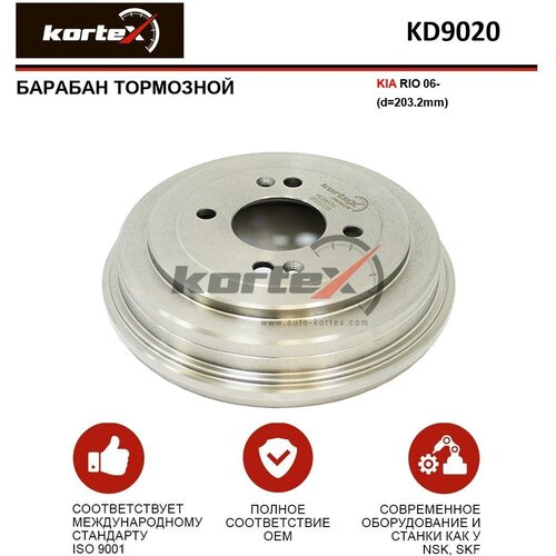 Барабан тормозной KORTEX производится на современных автоматизированных линиях производства с применением последних технологий, что гарантирует минимальное значение допусков, полное соответствие необходимым размерам и беспроблемную установку. Барабан тормозной KORTEX соответствует строгим требованиям качества производителей, служит полноценной заменой штатного тормозного барабана. Для того что бы узнать подойдет ли запчасть к конкретно вашему автомобилю, вам необходимо узнать OEM номер заводской детали вашего автомобиля и сверить ее с OEM номером указанным в описании данной карточки товара. Подходит для автомобилей: KIA RIO 06 d61;203.2mm) с ОЕМ: 584111G000, DB4422, KD9020