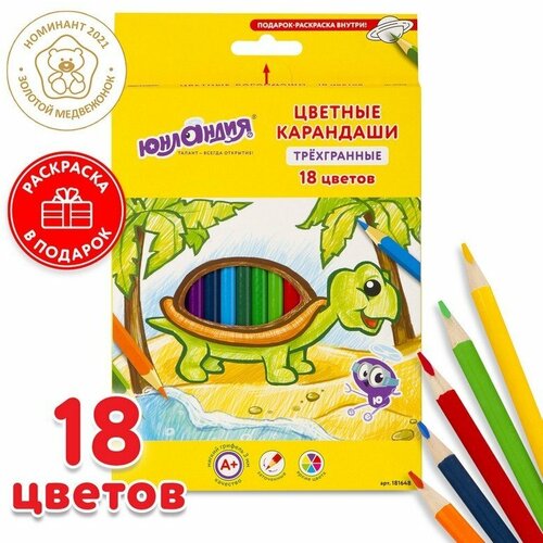 Карандаши цветные супермягкие юнландия тропики, 18 цветов, трехгранные, с раскраской, 181648