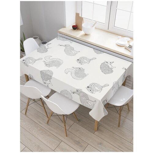 Скатерть прямоугольная JoyArty ежики и зайчики из сатена, 120x145 см