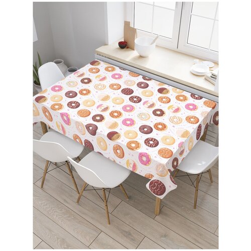 Скатерть прямоугольная JoyArty Пончики с узорами из сатена, 120x145 см