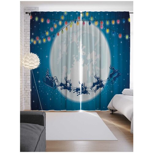 Шторы, фотошторы JoyArty Новогодняя сказка из ткани сатен, 2 полотна шириной по 145 см, высота 265 см, шторная лента и крючки, степень затемнения 70