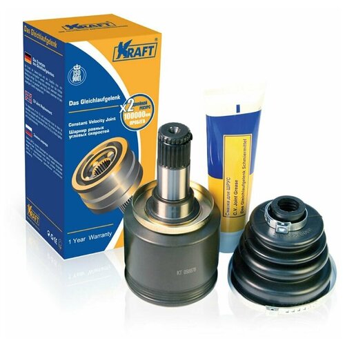 ШРУС ТМ KRAFT изготовлен в надлежащем качестве по европейскому стандарту ISO 9001. После завершения всех технологических процессов шарниры проходят различные экспертизы и неоднократные тестирования. Отличаются высокой прочностью и износостойкостью, гарантируют равномерную передачу вращательного движения. Герметичен Отсутствует осевой зазор); долговечен; работает бесшумно; Пыльник шруса ТМ KRAFT изготовлен из современного термопластика и соответствует всем необходимым требованиям, предъявляемых к нему: предел прочности при растяжении: 2530 МПа; относительное удлинение при разрыве: 280400 ; температурный предел хрупкости: 60 ; изменение массы при высоких температурах от 43;70) за сутки: 1215 . Стандартная комплектация: шрусы поставляются в комплекте с хомутами, пыльником, смазкой, гайкой для наружных шрусов), стопорным кольцом где требуется) и техническими перчатками. Замена какойлибо одной детали недопустима, шарниры заменяются только в сборе. Фирменная смазка для шруса ТМ KRAFT обладает уникальной способностью вытеснять воду, песок и грязь из зоны трения. Содержит элементы лития и молибдена. Обладает высокими антифрикционными, противозадирными, антикоррозионными, противоизносными свойствами. Обеспечивает временную защиту шарнира даже при разрыве резинового чехла и попадания внутрь грязи и воды. Продлевает срок службы шруса в 22.5 раза. Хомуты для шарниров изготовлены из прочного стального сплава, позволяющего надежно крепить ШРУС к промежуточному валу, а также обеспечивать плотное прилегание резинового пыльника к корпусу шарнира. Гайка для наружного шруса. Фирменные рабочие перчатки: трикотаж с точечным покрытием ПВХ, обеспечивают безопасность работы. Пропускают воздух, защищают кожу от механического повреждения, предотвращают скольжение. Стопорное кольцо нержавеющие, оксидированное. Комплектуется в некоторые стандартные комплекты со шрусом.